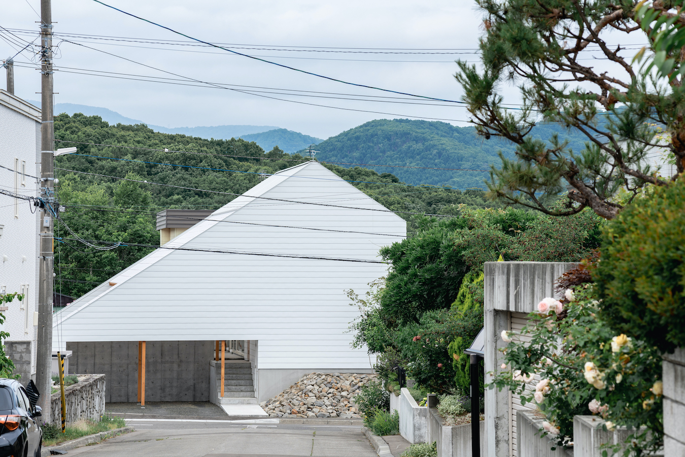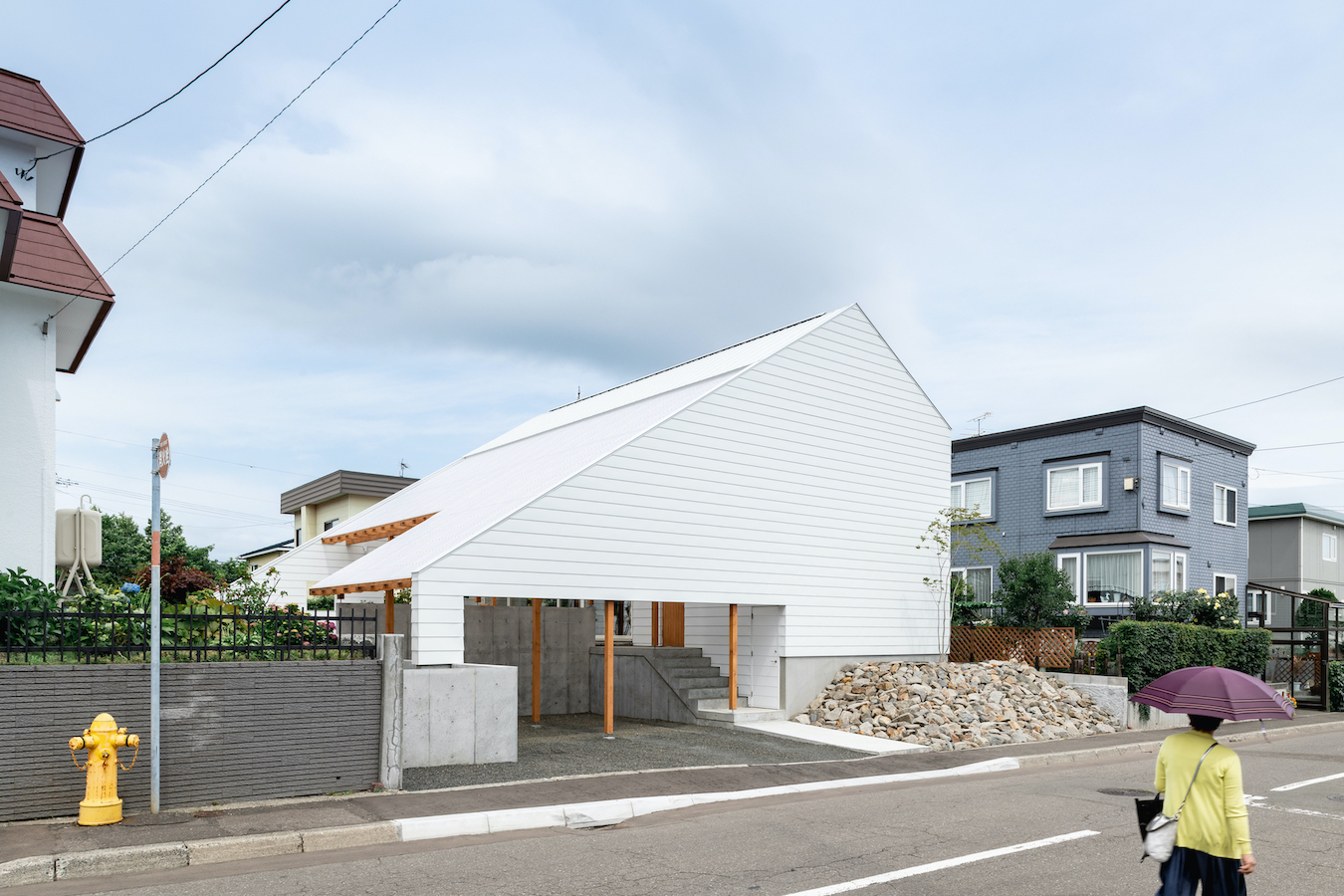 丁字路の突き当たりに位置する敷地のため前面道路からの視線を遮りながら、豊かに暮らす住宅を考えました。